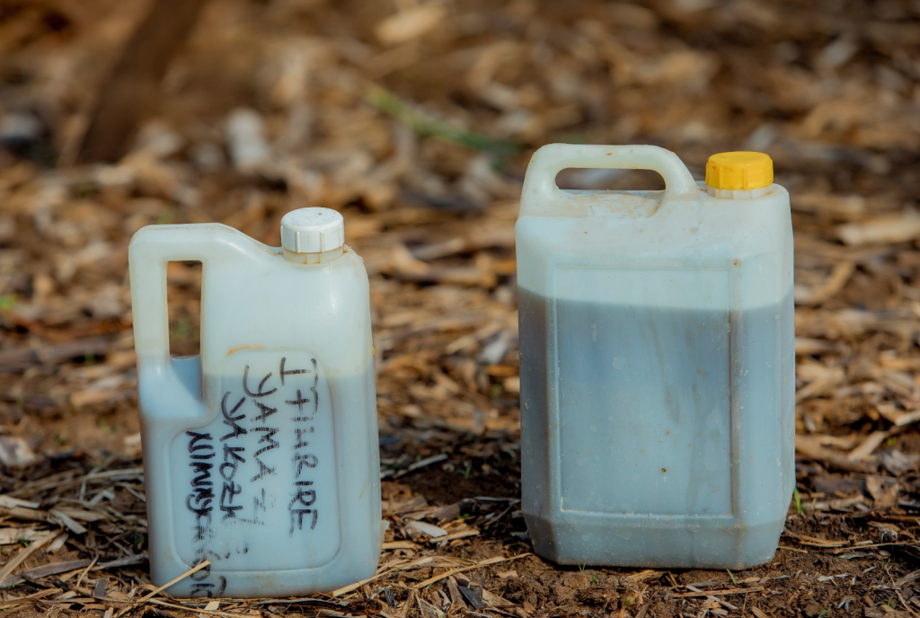 Photo:Vermicompost liquid fertilizer produced by farmers in Murundi Sector, Kayonza District, using organic waste and earthworms, offering a natural, low-cost solution to boost crop yields, improve soil health, and control pests.