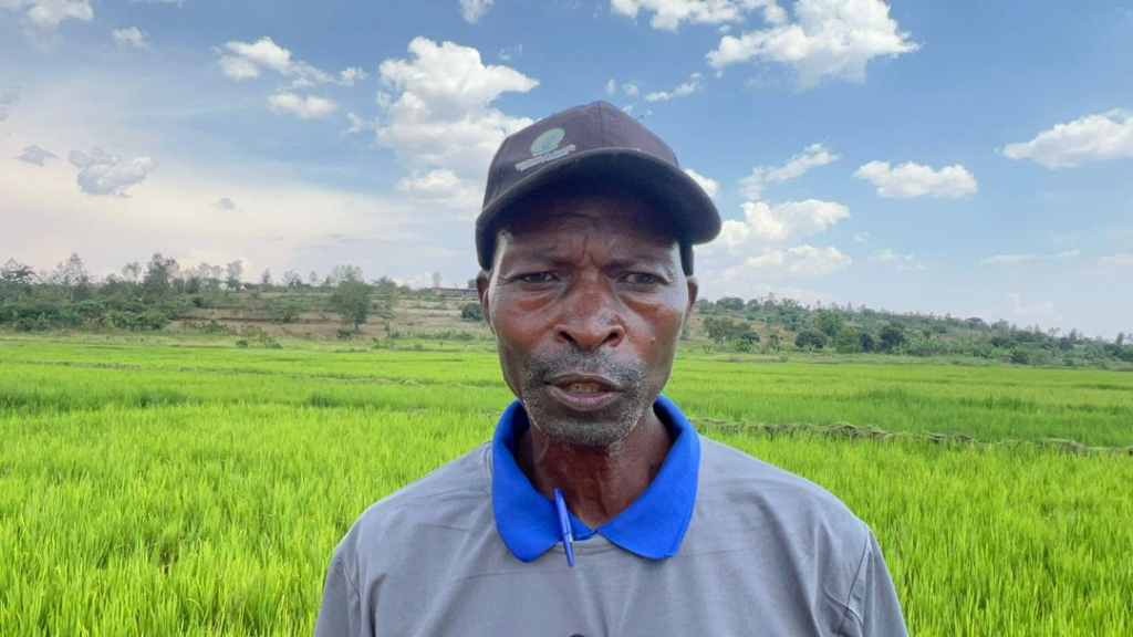 Edouard Bamporiki, a mixed farmer from Bukumba Village, Bushenyi Cell, Mareba Sector, also testifies: “I keep cows, chickens, and pigs all insured. In farming, I grow rice, chili, and beans, and all are insured. I started with rice insurance in 2020. My harvest failed, but they paid me back. Since then, I’ve continued because when you suffer losses, it really helps you recover.”