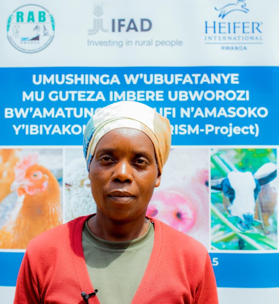 One of the beneficiaries, Tuyisenge Delphine, says she had never raised livestock before receiving pigs from the PRISM project, but the opportunity completely transformed her life. She lives in Rusenge Sector, Bunge Cell, in Nyaruguru District.