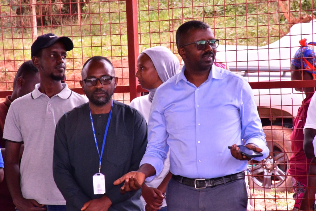 Photo:Munyeshyaka Claude Jimmy of RWARRI explains how the new solar-powered irrigation system will efficiently water 10 hectares, support year-round farming, and promote women’s agricultural development in Nyabuyogera.