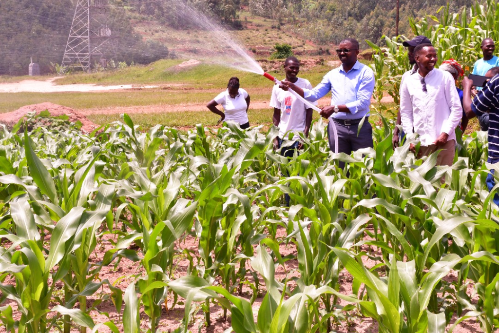 Photo:Rukundo Jean De Dieu, President of Inkingi z’Iterambere Cooperative, showcases the new solar-powered irrigation system set to boost year-round maize production.