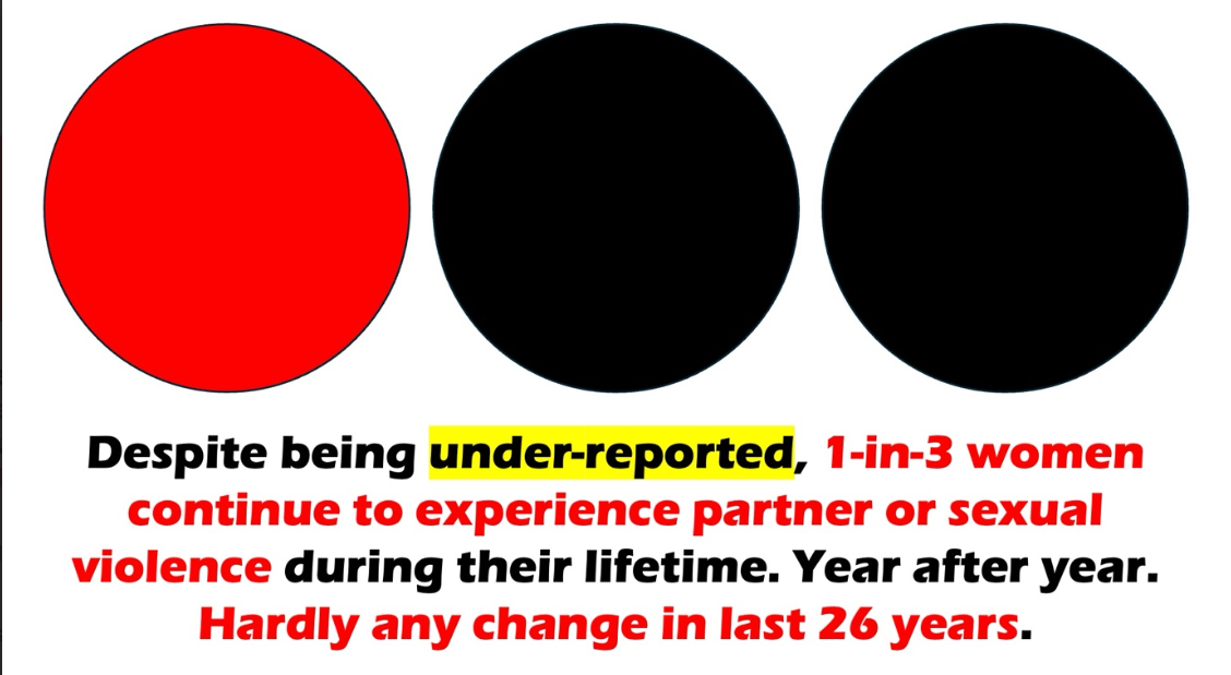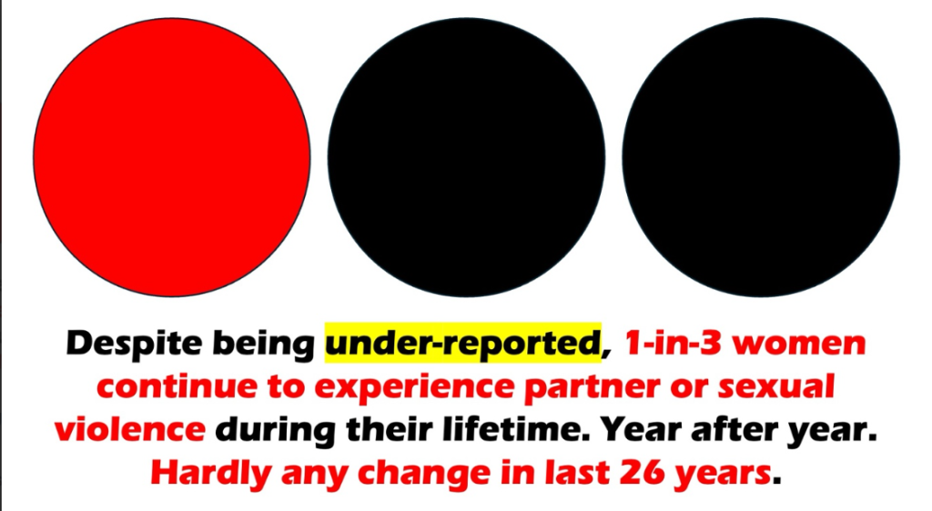 But recent data shows that despite violence against women and girls being the most persistent and under-addressed human rights violations and crises, the number of women who experience it in their lifetime has NOT changed much in the last 26 years (since 2000).